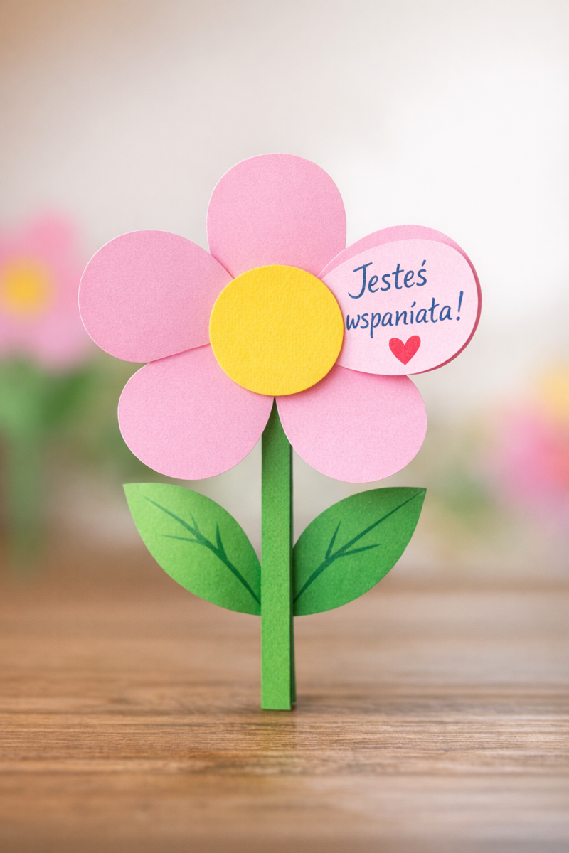 Dzieci przygotowały kolorowe, papierowe kwiaty z zapisanymi życzliwymi słowami, takimi jak: „Jesteś wspaniała!”, „Dziękuję za Twoją dobroć”, „Twoja cierpliwość ma znaczenie”. Powstało również Drzewo Dobrego Słowa, które z dnia na dzień „rozkwitało” kolejnymi kwiatami.